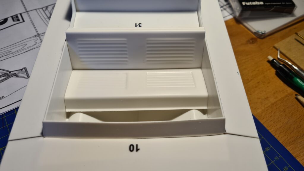 Po zoskrutkovaní jednotlivých sekcií trupu skrutkami a maticami M4 bol vonkajší trup hotový. Trebalo však ešte zmazať stopy po 3D tlači a tak nasledovalo tmelenie a brúsenie. Interiér tesného trupu je vyrobený pomocou sivej PVC rúry o priemer 90 mm, do ktorej je vložená technická kostra.