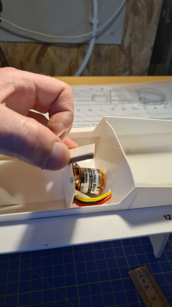 Ako koncová plocha je použitý 4 mm hliníkový plech, na ktorom sú umiestnené dve servá pre smerové a hĺbkové kormidlo. Tiahla kormidiel sú závitu M2 utesnené prechodkami od Norberta Brüggena. Ako hnací motor je použitý normálny „kartáčový“ jednosmerný motor, aj keď Christian sa pohrával s myšlienkou s moderným bezkomutátorovým (striedavým) motorom, ale ten by bol v trupe veľmi na tesno.